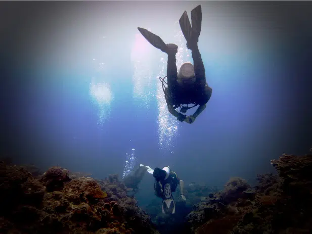 Von Anfang an sollte ganz bewusst unter Wasser ein Atemrhythmus: einatmen-ausatmen-Pause eingeprägt werden. Das erleichtert nicht nur die Tarierung, sondern verbessert den Luftverbrauch, erhöht die Tauchsicherheit und schenkt tolle tiefenentspannte Momente unter Wasser – und das von Atemzug zu Atemzug.