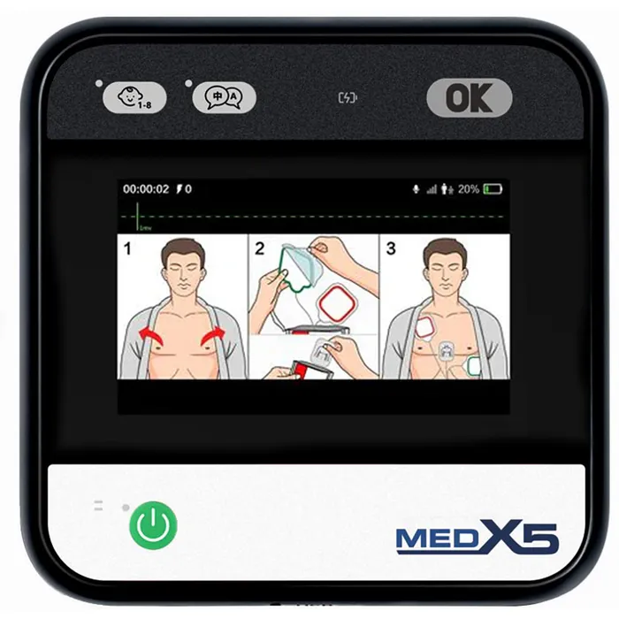 - Variante LED-Grafik mit grafischen Leuchtsignalen, die den Ablauf der Reanimation visuell unterstützen.